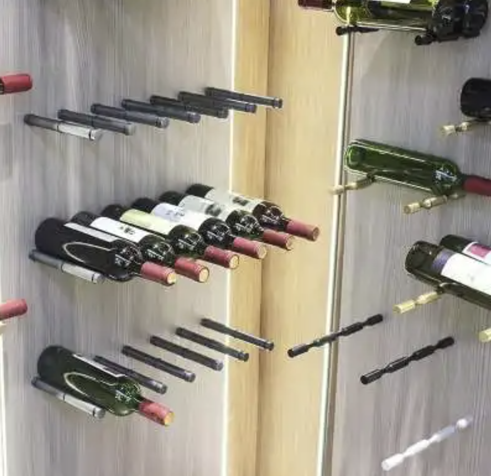 Wine Bottle Rack Wall Mount Pegs Brass Color Ships from Pompano Beach FL. New Modern Design Solution for wine bottle holder. Comes 2 pegs per order that hold 1 wine bottle. Each Peg is 7 Inches long and 1.2 Inches wide. See images below for Installation and direction of bottles. Designers are loving this new wine bottle pegs for their customers. Low profile, space saving and sleek look for you home or hotel bar. No more bulky wood racks that look like they should be in a cellar. This is the latest in modern wine rack design solution for your home bar display. Wine Pegs make it easy to show off your wines as the labels are exposed and easy to read. Take your home design look to the next level with this new Wine Bottle Rack Wall Mount Pegs Design Solution. See more wine pegs in pour store for sideways bottle display.
